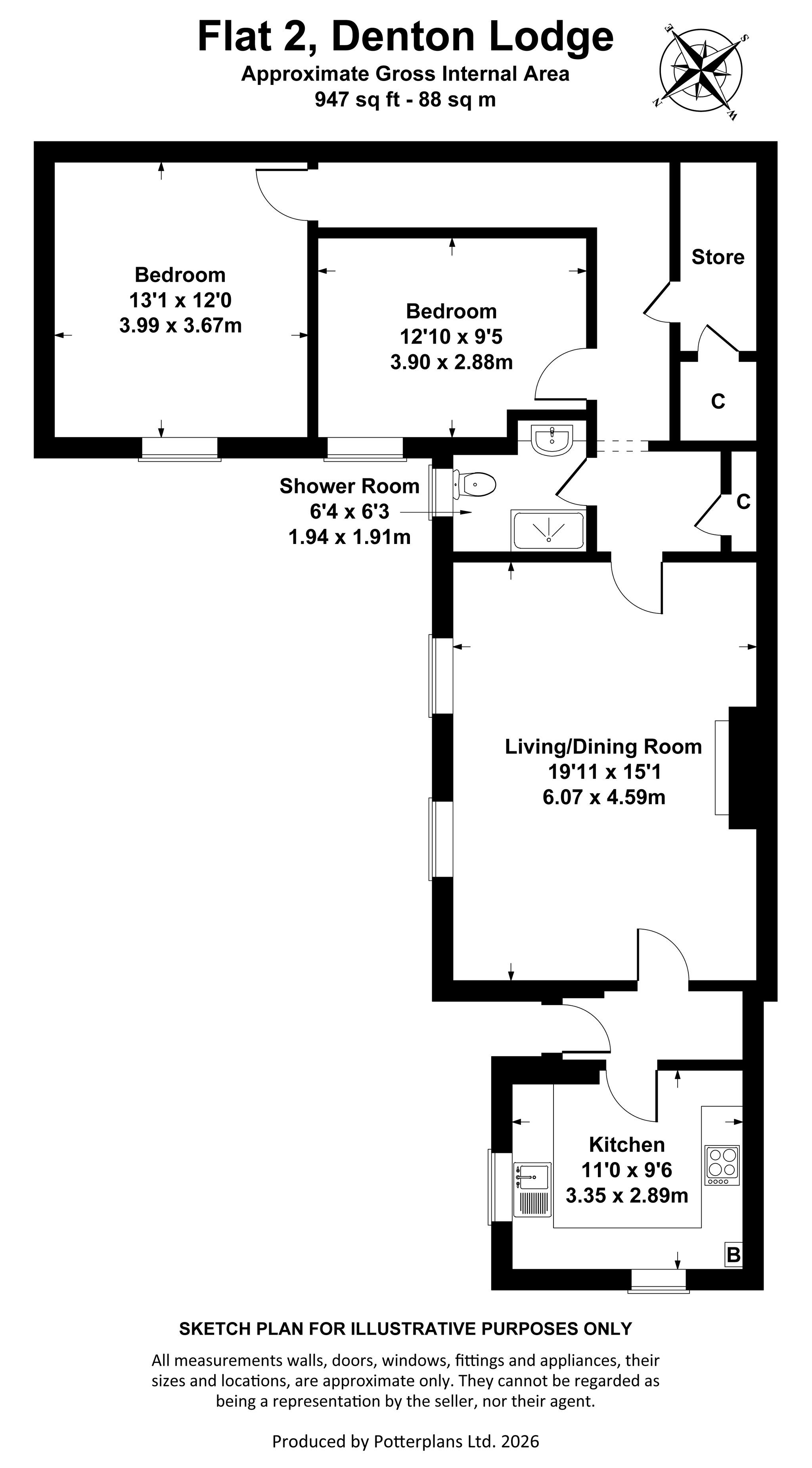 - Bedrooms: 2