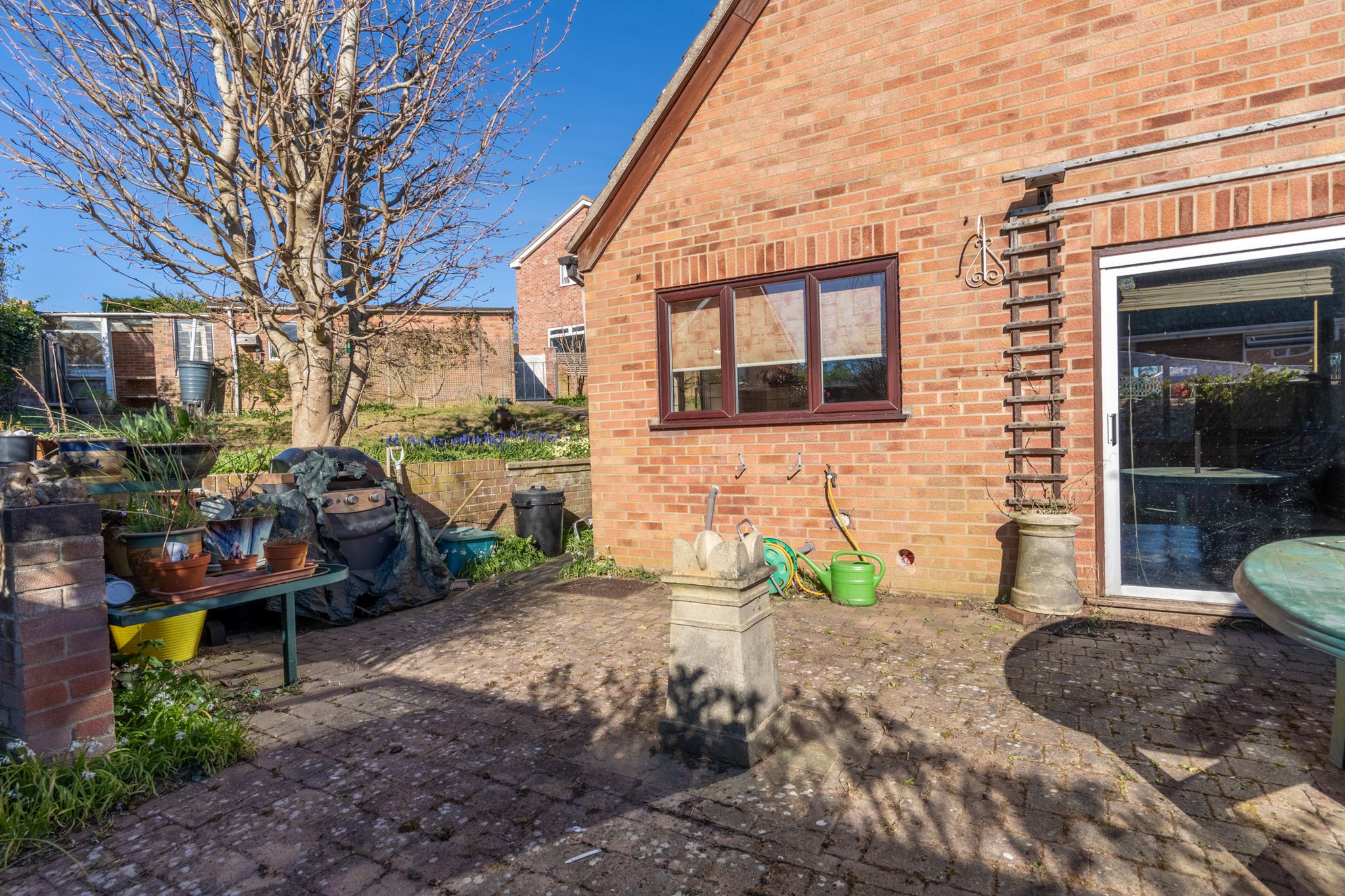 A semi detached family house, positioned on a generous corner plot offering excellent potential to upgrade, remodel and possibly extend (with the relevant consents). The accommodation includes an entrance hall, living room with feature fireplace, dining room, family room with sliding patio doors to the rear, kitchen, and utility area. Upstairs, there are 3 bedrooms, a bathroom, and a dressing room/home office. The master bedroom has a lovely sun terrace overlooking the garden. Outside, there is a single garage, driveway, and a good size garden which is principally to the side of the property with a seating area at the rear. The property has oil central heating and is offered for sale with no onward chain.