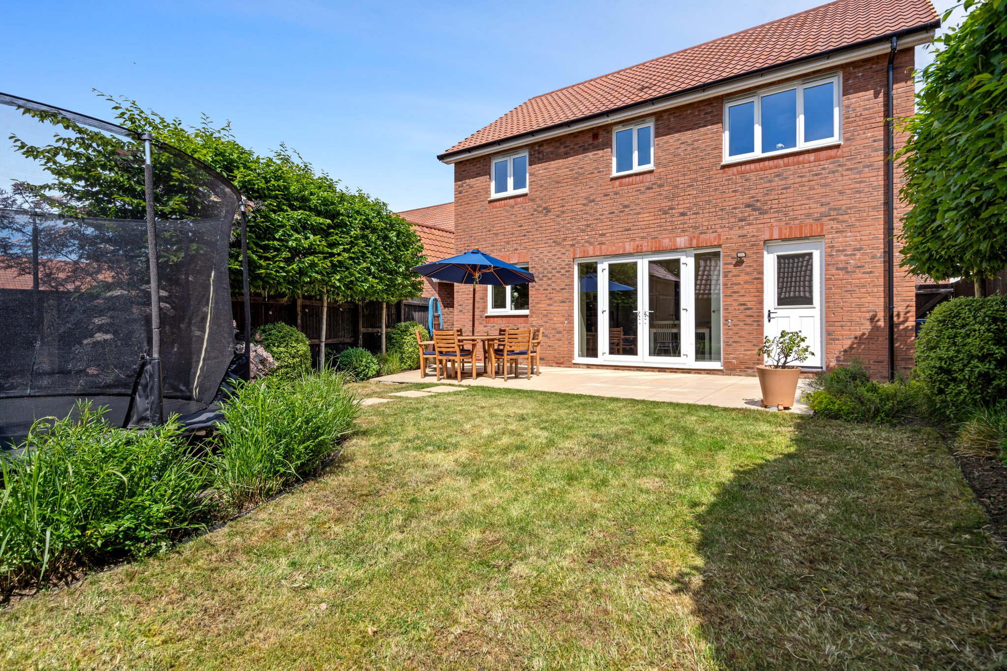 Constructed by Redrow Homes and completed approximately 5 years ago, this 3 double bedroom, detached, family house has the luxurious benefit of en suite shower rooms to each generously portioned bedroom. This popular Oxford Lifestyle design is beautifully presented throughout with additional upgrades to include Amtico flooring, ceramic worktops, and an impressive landscaped garden. The stylish accommodation includes a reception hall, living room, kitchen/dining room with a range of sleek modern units and double doors to the rear garden, and a further door leading to the utility room and cloakroom. On the first floor, there are 3 double bedrooms all with en suites shower rooms, the master bedroom also benefits from a dressing area. Outside, there is a driveway comfortably providing parking for 2 cars, and a good size integral garage. The southwest facing rear garden features a lawn with a good size patio laid with porcelain slabs, ideal for relaxing and entertaining. The property further benefits from gas central heating, double glazing, and a New Home Build Guarantee.