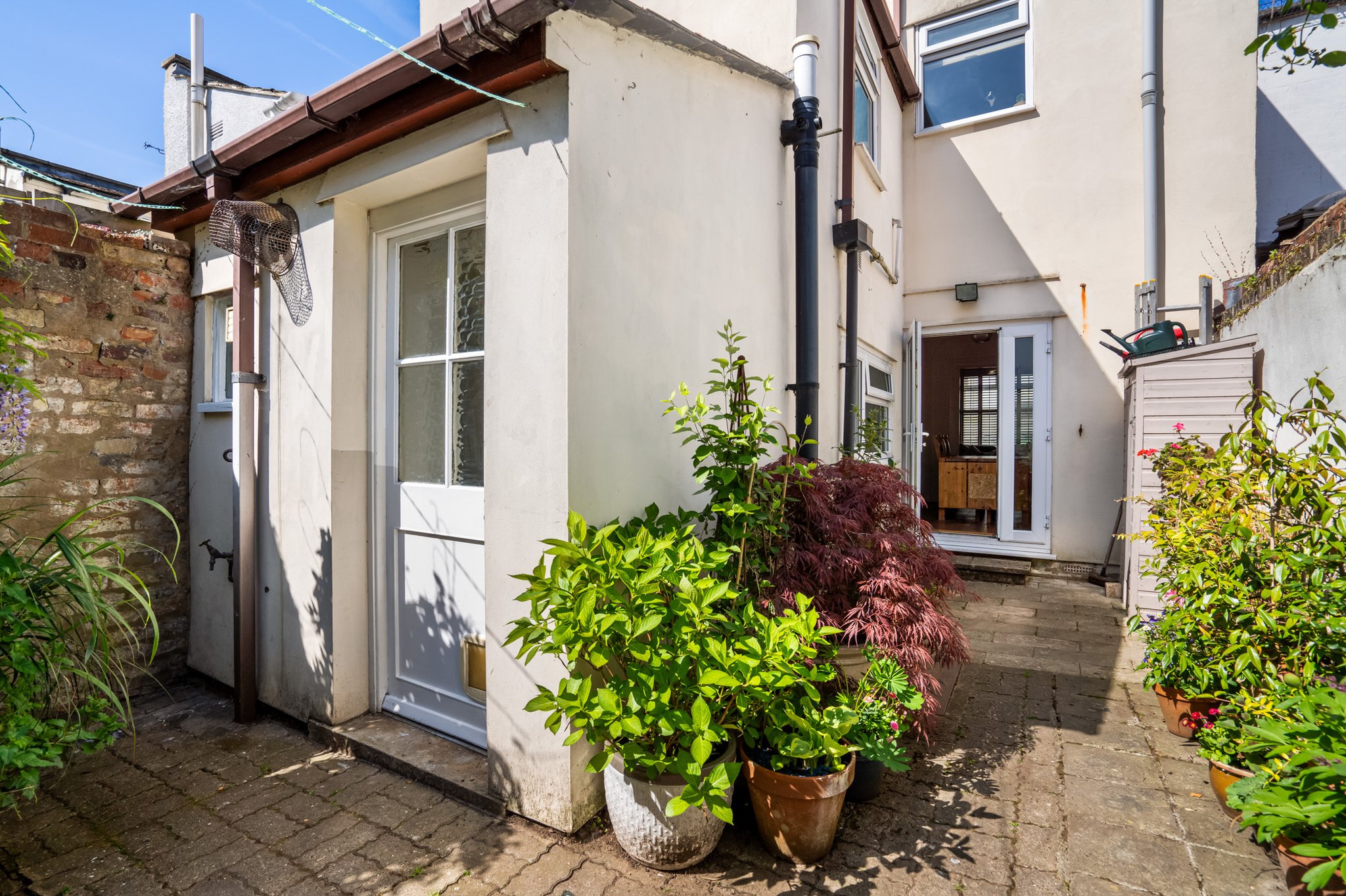 A charming 3 bedroom, period, town house arranged over 3 floors offering versatile accommodation, situated within this popular residential location just minutes from the town centre. This traditional property comprises an entrance hall with steps down to the lower ground floor bedroom, a characterful living room with window to the front aspect having bespoke shutters, a feature fireplace, and attractive wooden flooring which continues into the dining room. The kitchen has a range of units with wooden worktops, display shelving, appliance space, and an inner walkway through to the downstairs cloakroom and door to the rear garden. On the first floor, there are a further 2 double bedrooms, the principal bedroom with dual aspect and bespoke shutters, and a good size family bathroom with separate shower cubicle. Outside, there is an enclosed, low maintenance rear courtyard, ideal for outdoor dining.