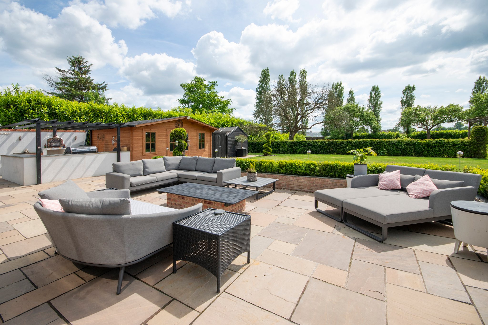 An impressive contemporary family house, situated in an exclusive gated development with excellent access to Cheltenham, Gloucester and Tewkesbury. The beautifully presented accommodation includes a reception hall, a magnificent open plan living/dining and kitchen area with views across the garden, separate utility room, cinema room, feature mezzanine, and home office. There are 5 ground floor double bedrooms and 3 luxury bath/shower rooms (2 en suite). 3 of the bedrooms have dressing rooms which could be used as play spaces or additional office space. Outside, the property is approached via secure electric gates leading to ample parking, turning space, and a carport with EV Charger. The landscaped gardens extend to approx. 1 acre with garden room, outdoor kitchen, and leisure area with sunken hot tub.